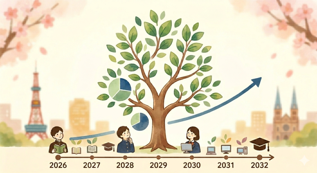 | 2030〜32 | 各650,000 | 大学2〜4 |