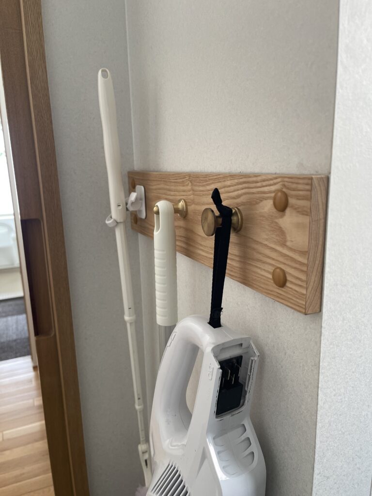 ランドリールームで、クイックルワイパーとクイックルハンディをぶら下げているフックは、